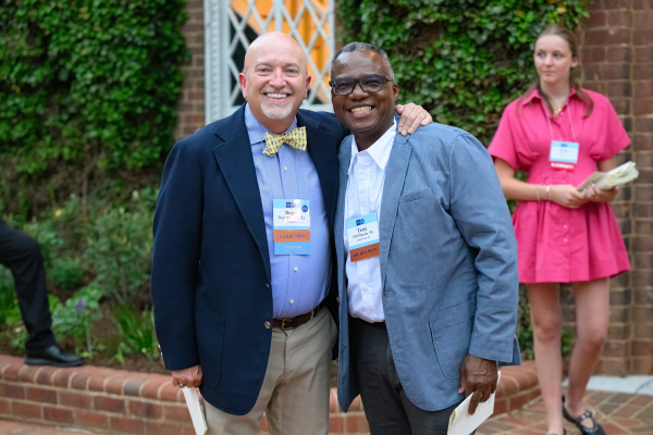 Roger Day '85, P'15, P'21 and Terry McWhorter '85 reunite to celebrate their 40th reunion at Alumni Weekend.