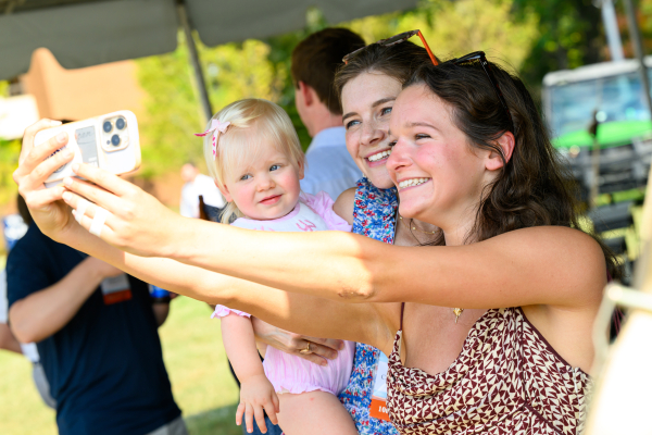 Happy Carlock Madden '15 and her daughter, Trixie, take a selfie during Young Alumni Weekend with fellow Dallas native Amelia Sinwell '27.