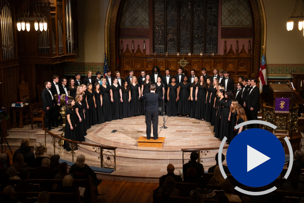 Click on the image to play the video, which features a click and drag 360-degree view of the annual holiday tradition performed by the University Singers.