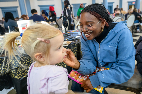 Grace Theodore ’28 paints faces at the Martin Luther King Jr. birthday party in Evans Hall.